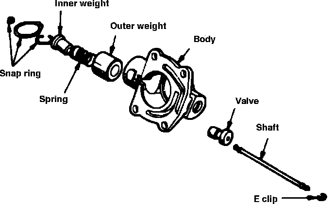 4. Remove snap ring from inside governor weight and remove inner weight and spring from outer weight.