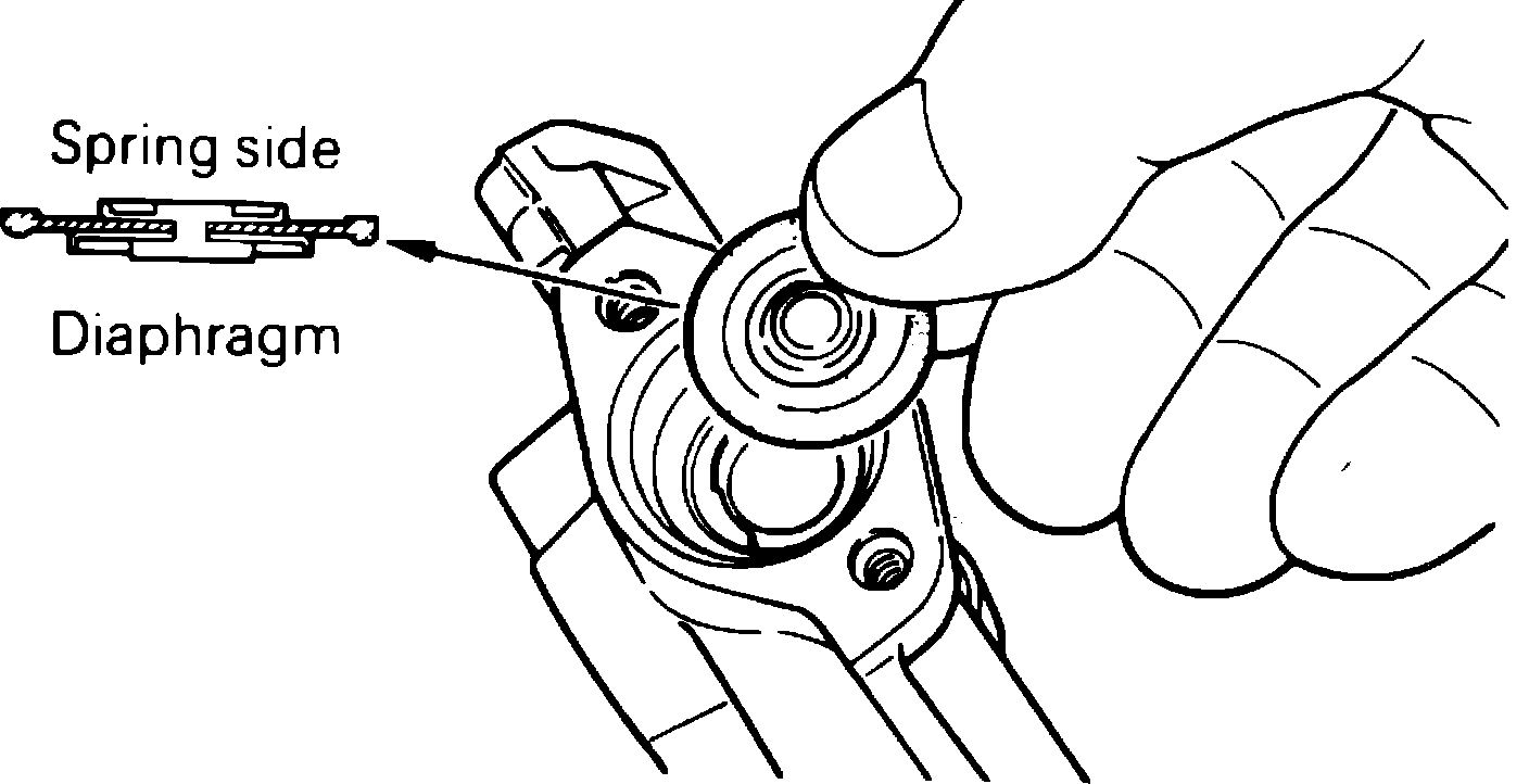 7. Insert pulsation damper diaphragm into injector retainer, Fig. 57, then install spring and cover and tighten screws.
