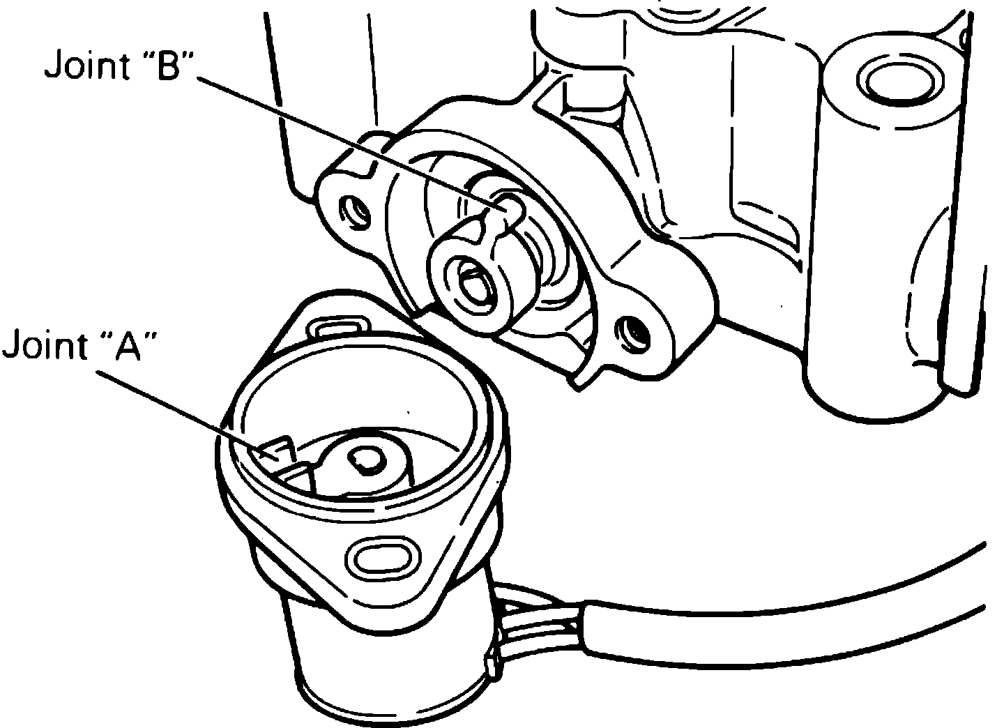 10. Insert throttle position sensor joint ``A'' into joint ``B,'' Fig. 58, then temporarily tighten attaching screws. After installing injection mixer assembly to engine, adjust throttle position sensor as follows: