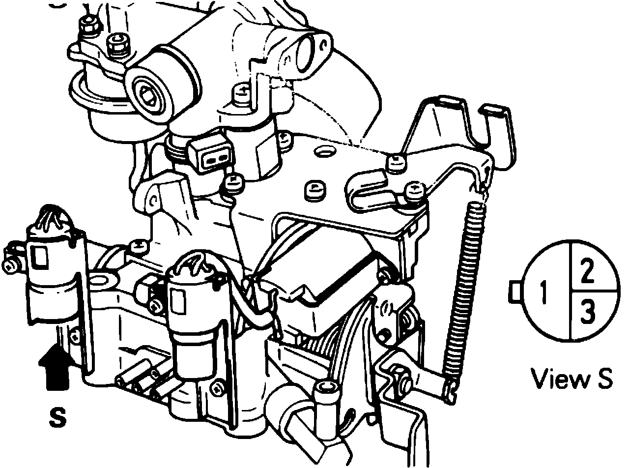 b. Measure resistance values between terminals 1 and 2 or 2 and 3 while opening and closing throttle lever, Fig. 59. Sensor is properly installed if resistance values change as throttle lever is moved.