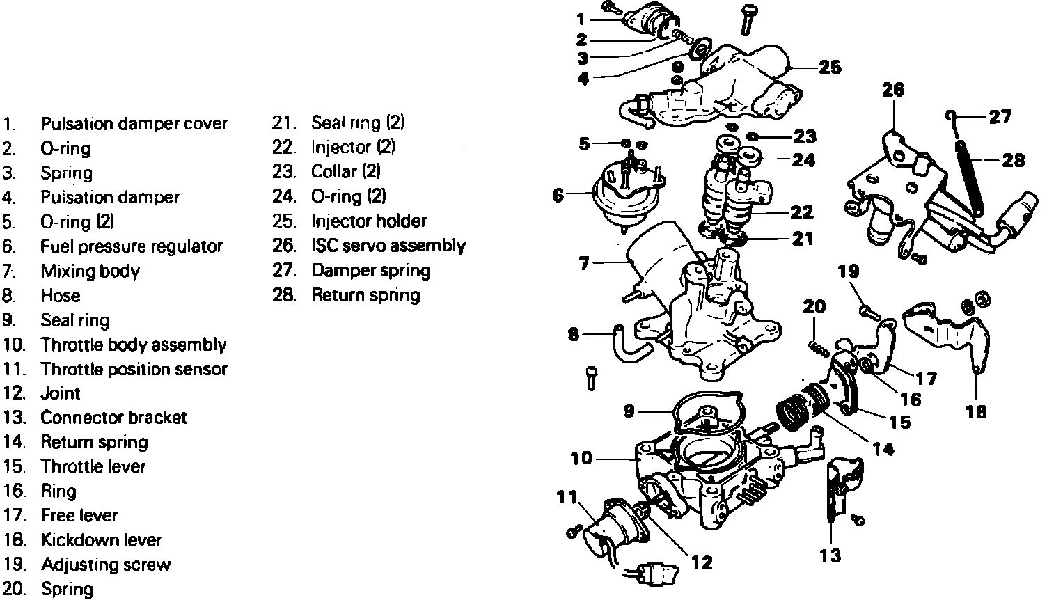 1. Place injection mixer in a suitable soft jawed vise, then remove throttle position sensor.