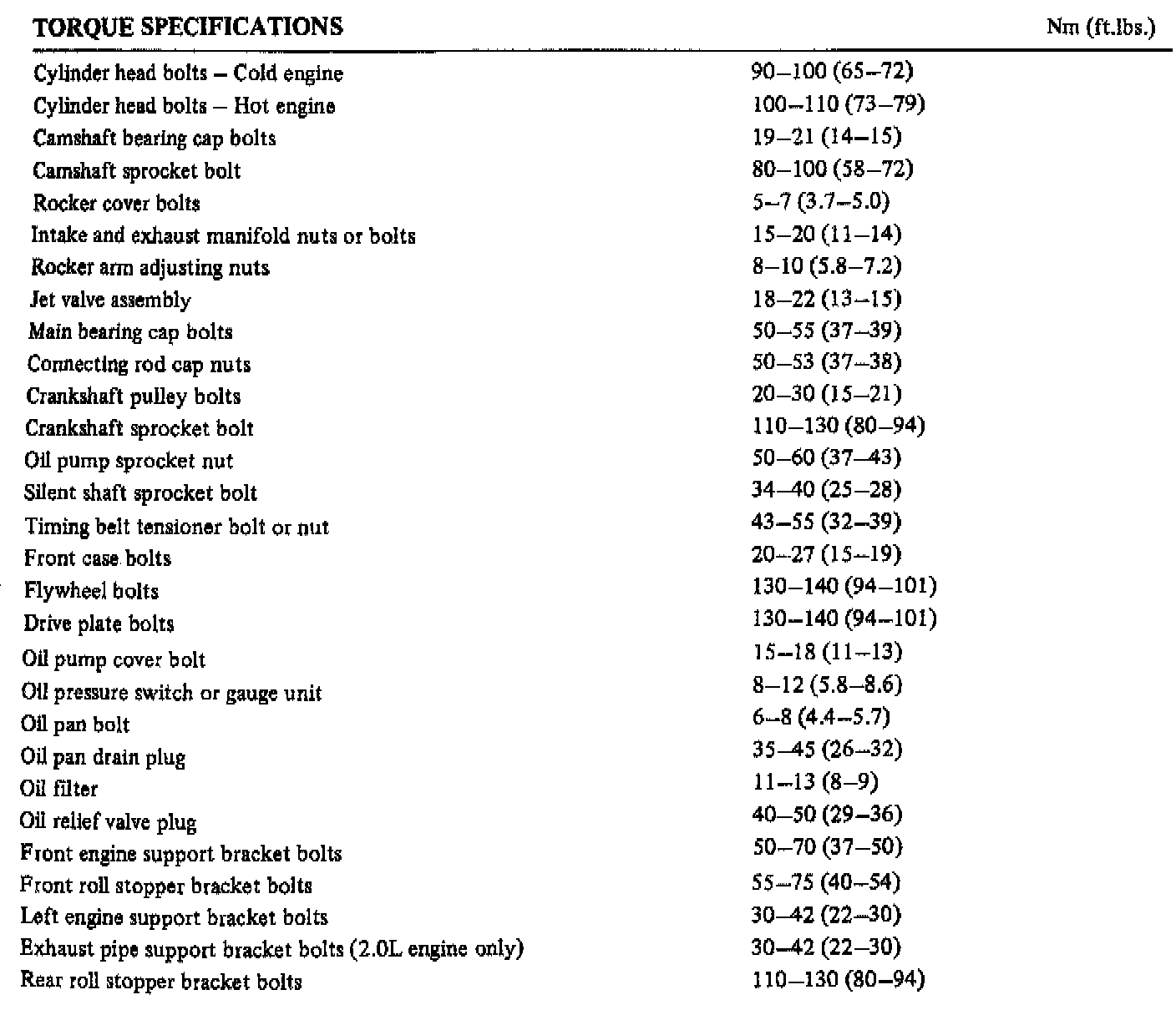 TORQUE SPECIFICATIONS