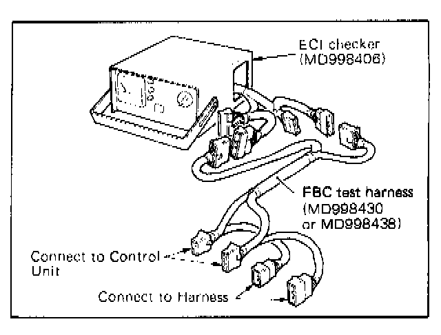 FEED BACK CARBURETOR (FBC) TESTING PROCEDURE (USING ECI CHECKER)NOTE: Use the special tools (Test harness and ECI checker) for the following inspection steps below.