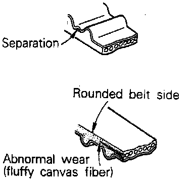 NOTE: The timing belts must be checked closely. Should the following defects be evident, replace the belt with a new one.