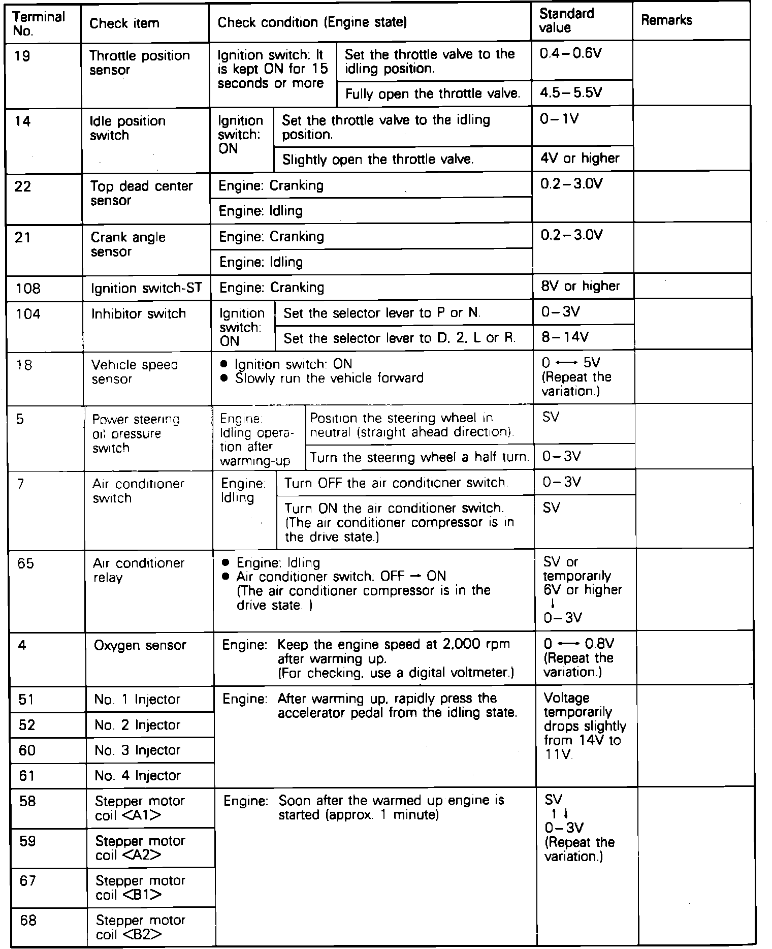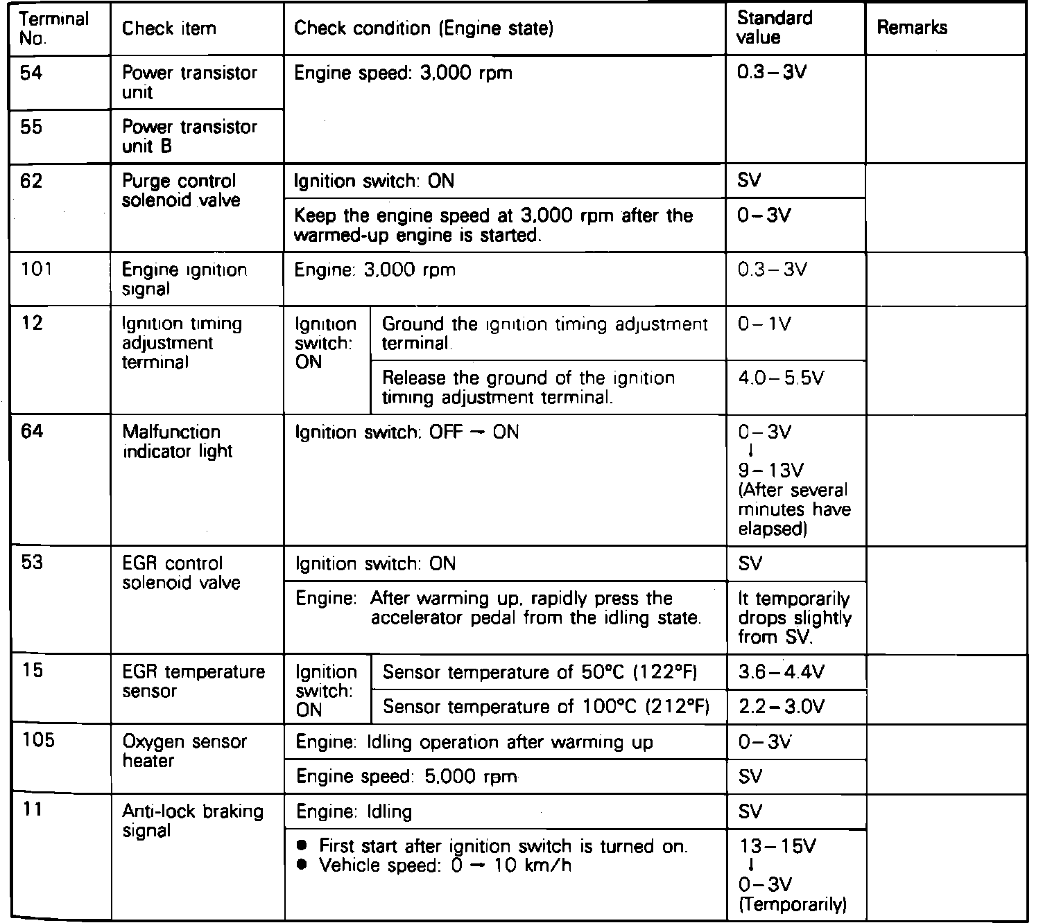 Terminal Voltage Check Chart: