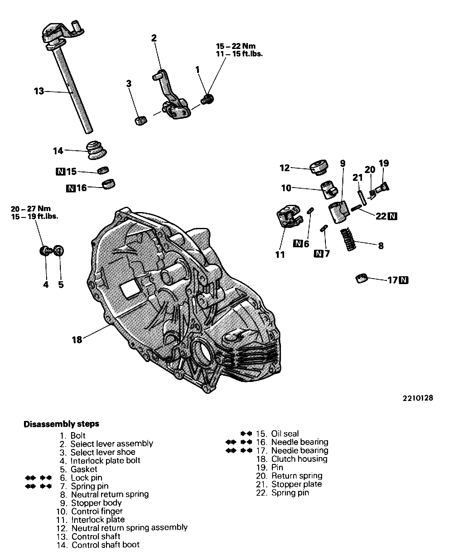 CAUTION: When removing the lock pin, turn the control lever to a position so that the lock pin will not contact the clutch housing.