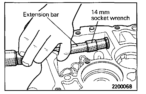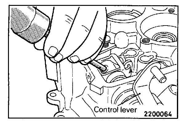 CAUTION: When removing the spring pin, pull the control shaft in the direction shown so that the spring pin will not contact the clutch housing.