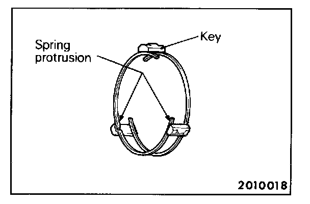 Install the synchronizer spring so that its protrusion fits into the synchronizer key. Make sure that the protrusions in the front and rear springs do not fit over the same key.