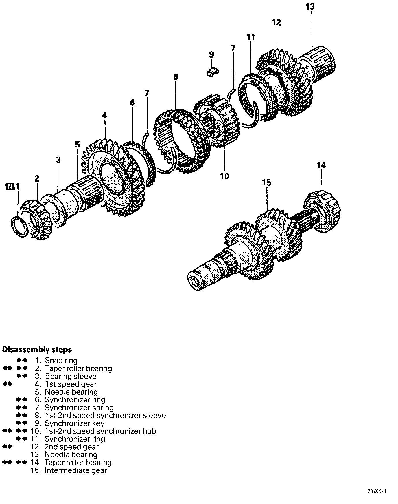 10. REMOVAL OF 1ST-2ND SPEED SYNCHRONIZER HUB /12. 2ND SPEED GEAR
