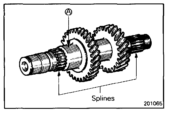 - Check the outer surface of the intermediate gear where the needle bearing is mounted for damage abnormal wear, and seizure (portion (A)).