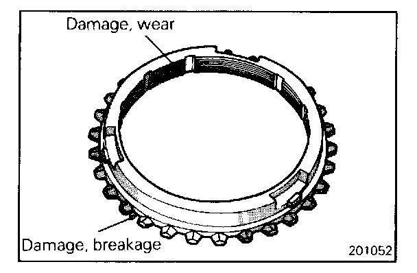 - Check the synchronizer cone for rough surface, damage, and wear.