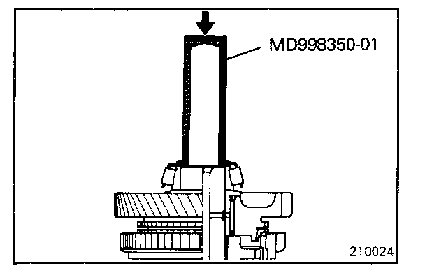 Using the special tool, press-fit the taper roller bearing over the intermediate gear.