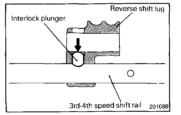 Fit the interlock plunger into the position shown in 3rd-4th speed
