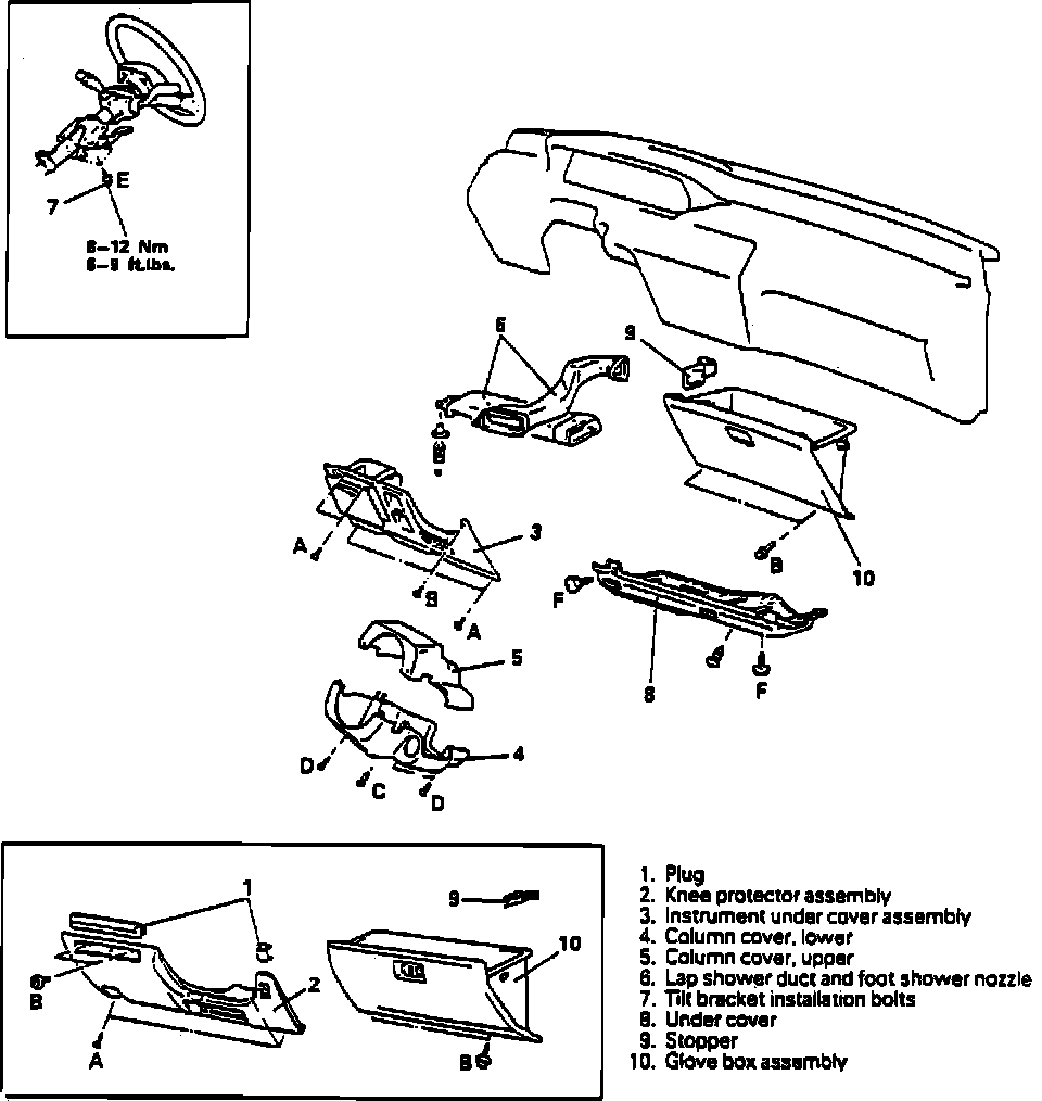 10. Remove glove box assembly and ashtray.