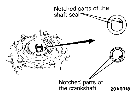 (2) Align the notched parts of the shaft seal with the notched parts of the crankshaft, and then install the shaft seal onto the crankshaft, positioning at the base of the crankshaft.