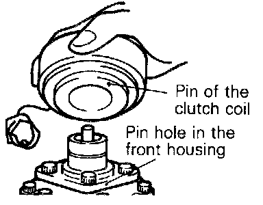 (1) Align the pin of the clutch coil with the pin hole in the front housing, and then fit it into the hole.