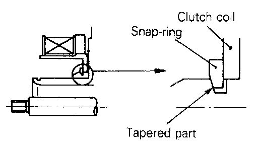 (2) Install the snap ring so that the tapered surface is at the outer side.