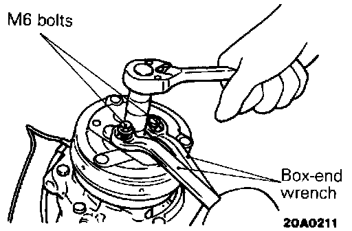 (2) Use box-end wrenches to hold the provisionally installed bolts (so as to prevent the armature plate from turning), and then remove the nut.