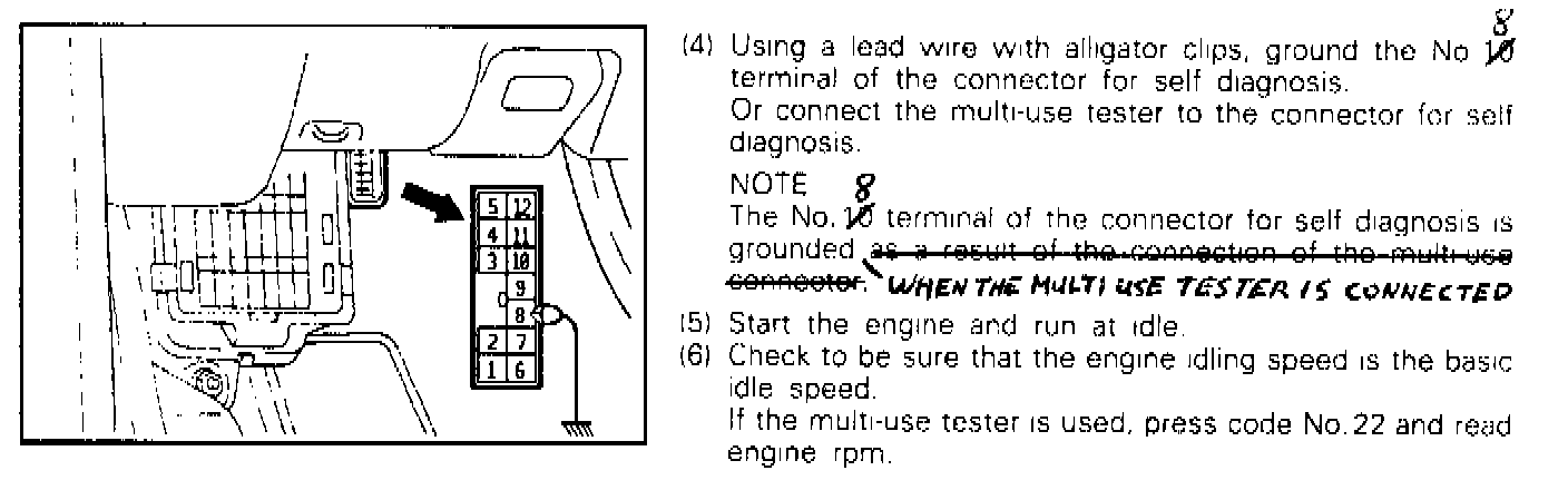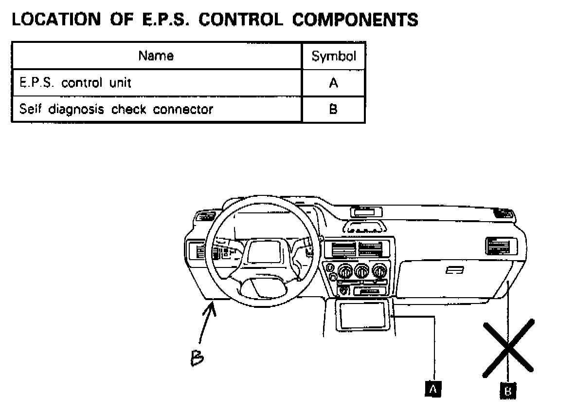 This Bulletin is to inform you of updates to the 1989 Galant and Mirage Service manuals. Three changes need to be made concerning the Self Diagnosis connector. Two changes are to a Self Diagnostic terminal number referred to in the Fuel System section, and the associated text. The third change is to the indicated location of the Self Diagnosis connector when referring to the Electronic Power Steering control components. As reference to this bulletin, please write the TSB number in the revision box at the bottom of page 14-31 and 19-14 in Volume 1 and page 8-169 in Volume 2, 1989 Galant Service Manual, and page 14-33 in Volume 1, 1989 Mirage Service Manual.