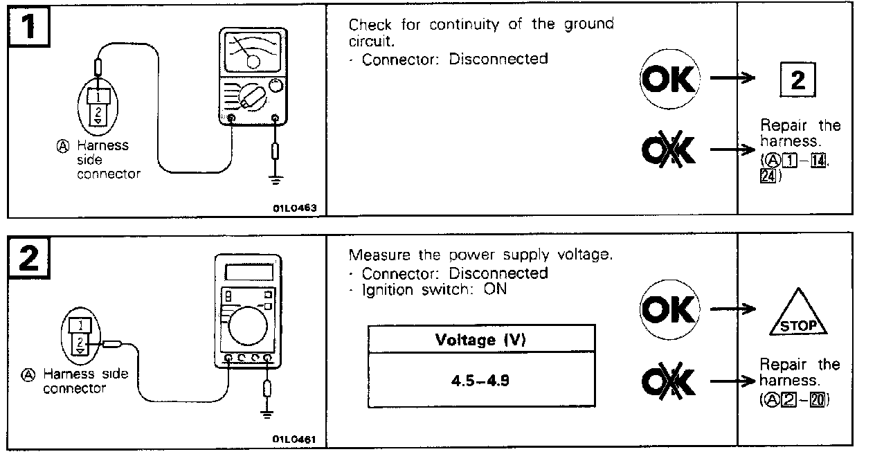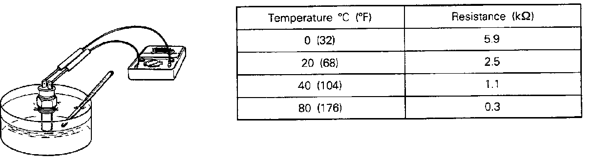 (2) With temperature sensing portion of engine coolant temperature sensor immersed in hot water check resistance.