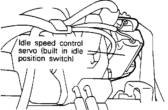 The Idle Position Switch, is a contact switch that senses accelerator operation. The switch is built into the Idle Speed Control (ISC) servo and is not replaceable separately. When the throttle valve is in the idle position, the ISC lever pushes the switch on.