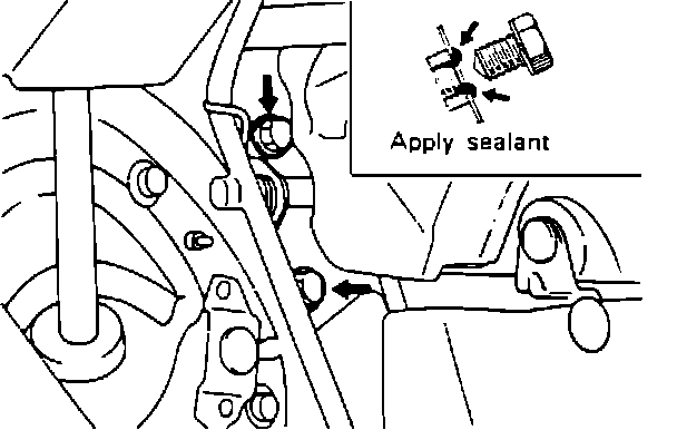 2. Apply sealant to the bolt mounting hole, and tighten the accelerator arm bracket bolts.