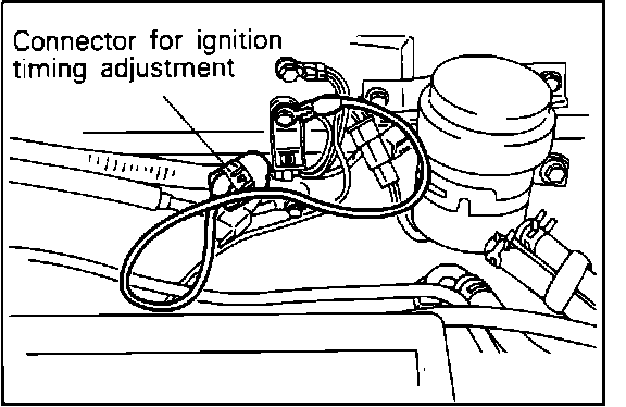 2. With the engine stopped, connect a lead wire, between the terminal for ignition timing adjustment (located in the engine compartment) and ground.