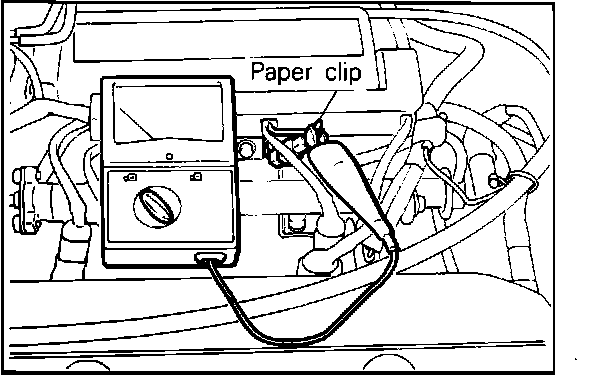 Insert a paper clip (from harness side) in the one pin connector located between the noise filter and the ignition coil, and connect the tachometer.