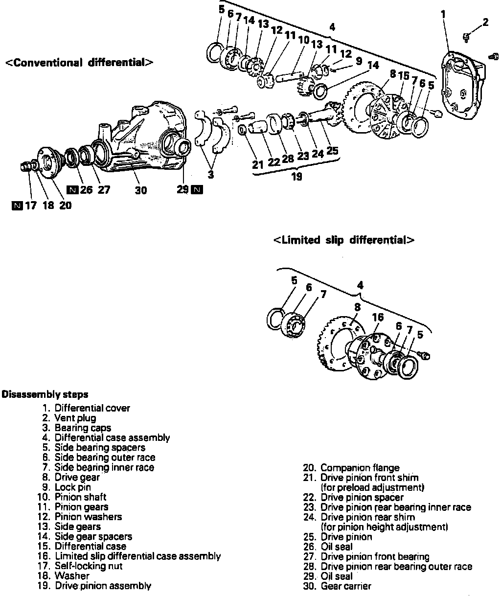 7. On models with conventional differential, adjust differential gear backlash as follows: