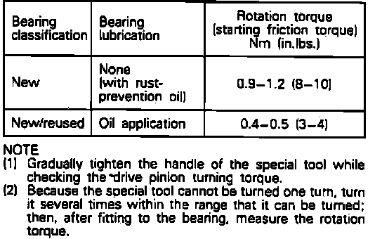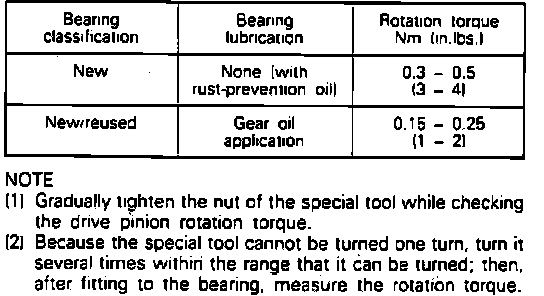 d. If drive pinion turning torque is not within specified range, adjust by replacing drive pinion front shims(s) or drive pinion spacer.