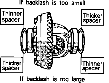 d. If differential gear backlash exceeds .008 inch, adjust backlash by installing thicker side gear spacers.