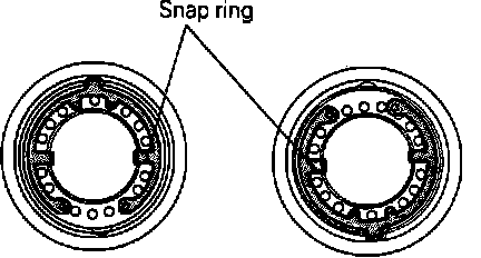 e. Install snap ring at either position shown to lock side bearing nut, Fig. 28.