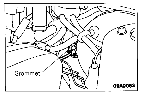 2. Install the grommet so that, as shown in the illustration, the cable attachment part and the projecting part are horizontal.