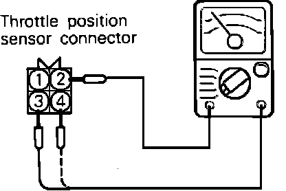 4. Slowly open the throttle valve from the idle position to the fully open position and check that the resistance values change smoothly with the opening of the throttle valve.