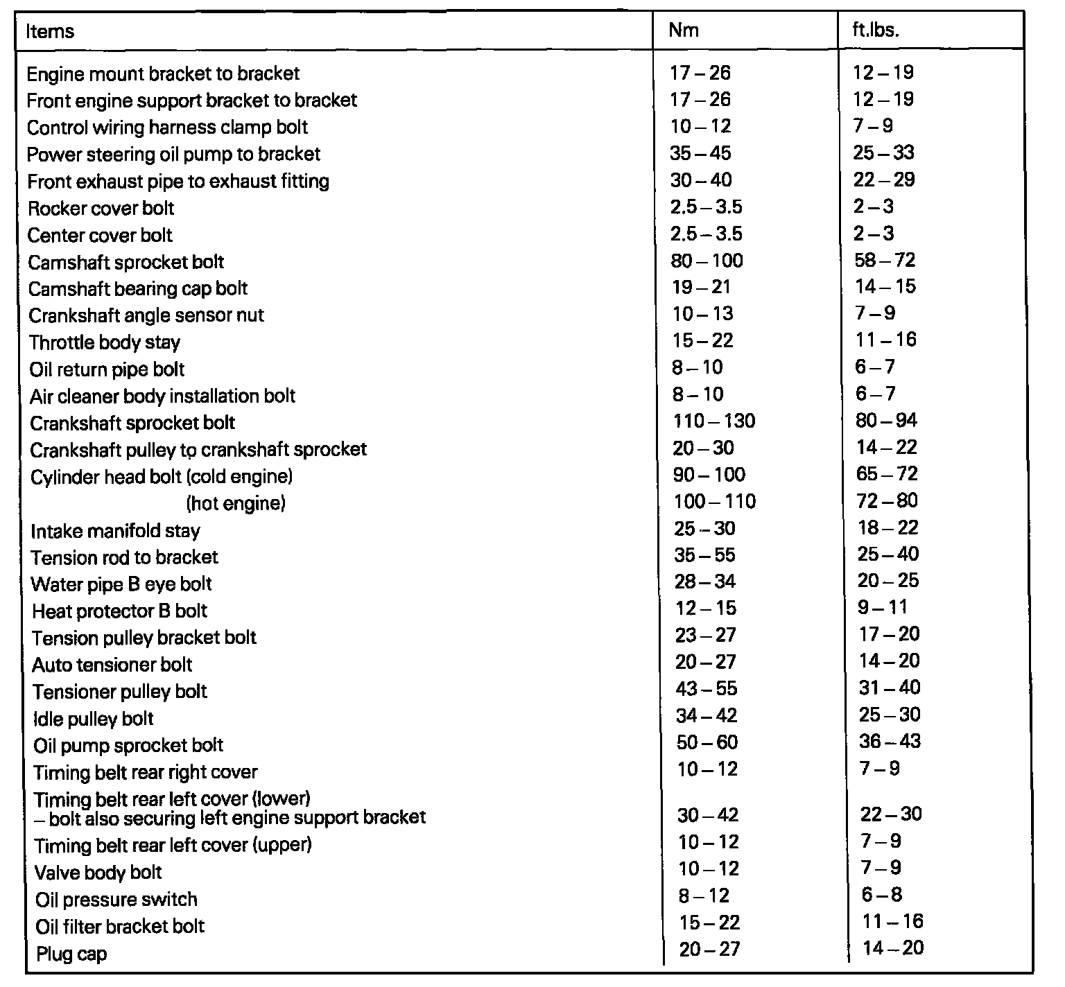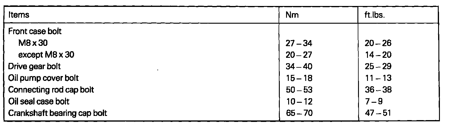TORQUE SPECIFICATIONS
