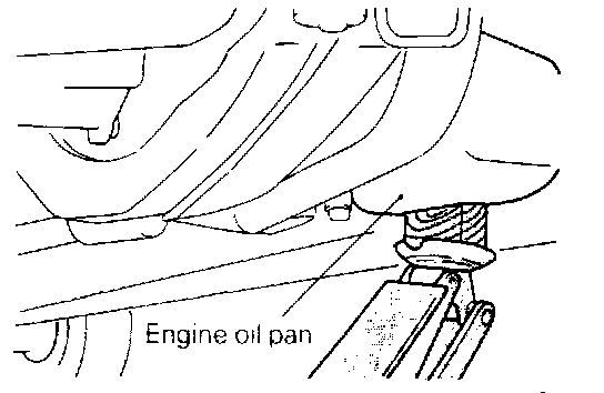 (1) With a wooden block placed against the oil pan part of the engine, jack up the vehicle.