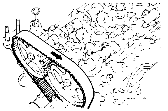 - Make a mark on the back of the timing belt indicating the direction of rotation so it may be reassembled in the same direction if it is to be reused.