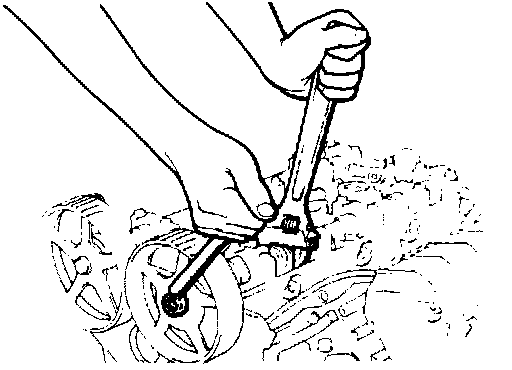 (1) Using the special tool and a disused drive belt. stop the rotation of the crankshaft pulley.
