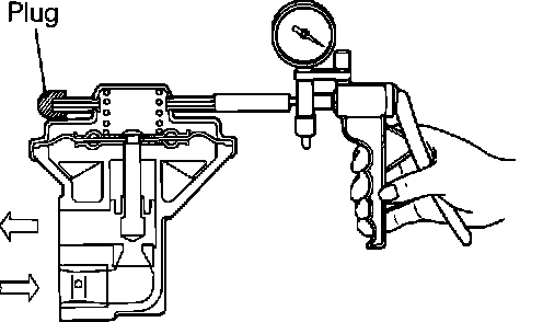 2. Connect a hand vacuum pump to the EGR valve. Apply 67 kPa or 19.4 in. Hg of vacuum and verify that the diaphragm chamber is leak tight.