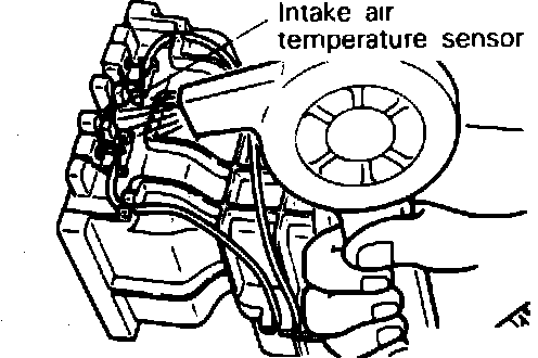 To test the Intake Air Temperature Sensor, located on the air flow sensor, in the air cleaner housing. Remove the air flow sensor (AFS) connector and proceed as follows.