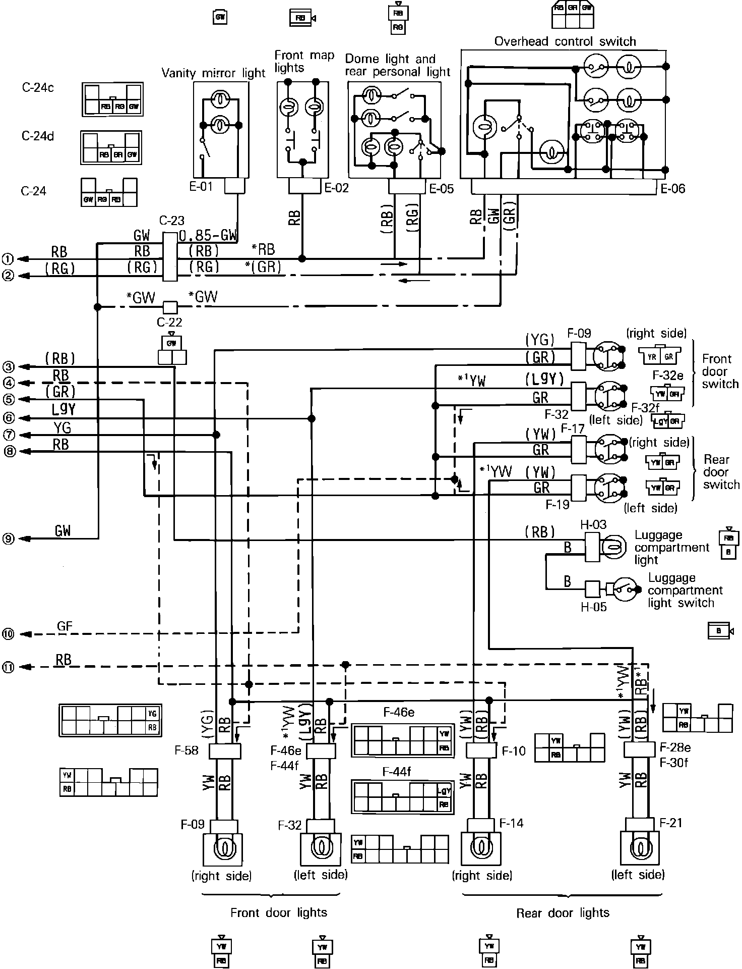Dome, Front Map, Luggage Compartment & Vanity Mirror Lamps: