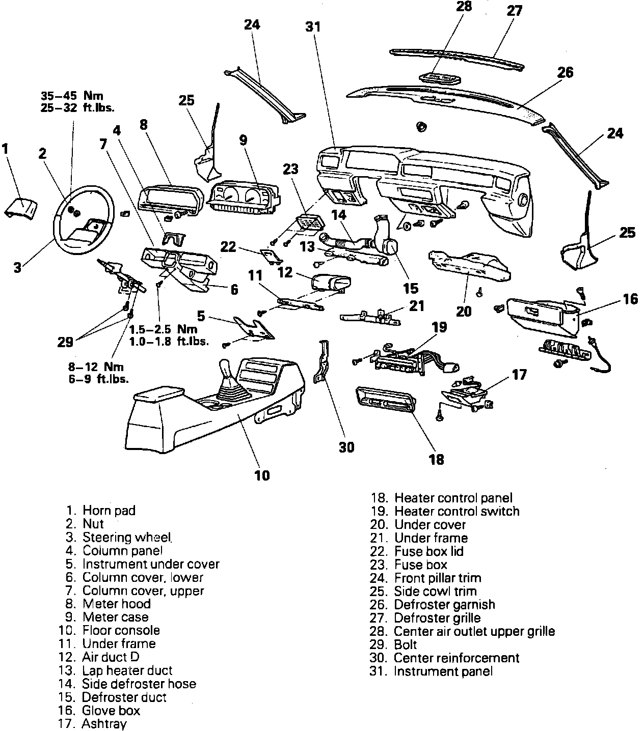 Fig. 15 Instrument Panel Mounting Bolt Location: