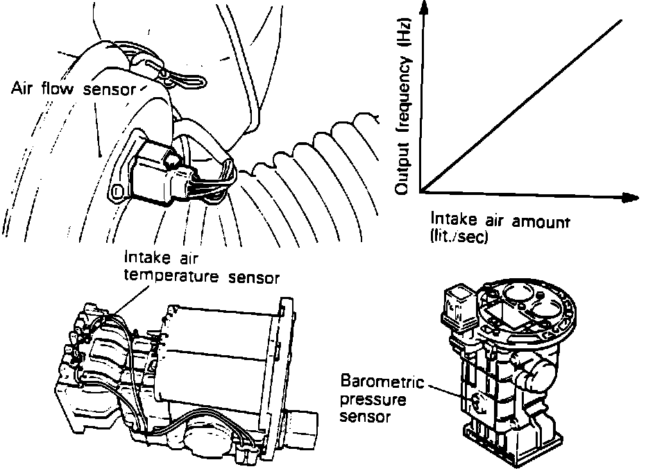 The Air Flow Sensor (AFS) is a Karman Vortex type and measures the intake air volume.