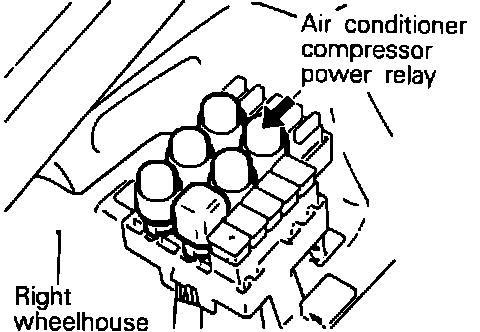 When the air conditioner switch is turned on, while the engine is at idle, the Idle Speed Control (ISC) servo operates to increase the engine speed and the ECU advances the ignition timing, to maintain ideal idle speed. However, there is some delay before the engine speed actually increases. To maintain the engine free from the air conditioner load during that delay period, the ECU keeps the power off for about 0.5 seconds to open the air conditioner power relay circuit. As a result, even if the air conditioner switch is on, the air compressor is not driven instantly, preventing engine speed drop due to compressor load. In addition, for automatic transmission equipped models, during acceleration when the throttle valve opening is above 65°, the air conditioner power relay circuit is shut off for approximately five seconds to enhance acceleration performance.