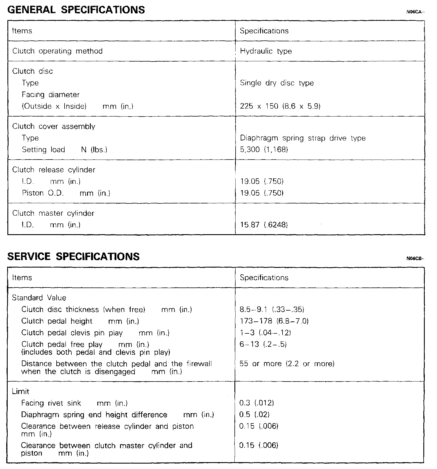 KM210 5-spd M/T, Clutch Dimensions: