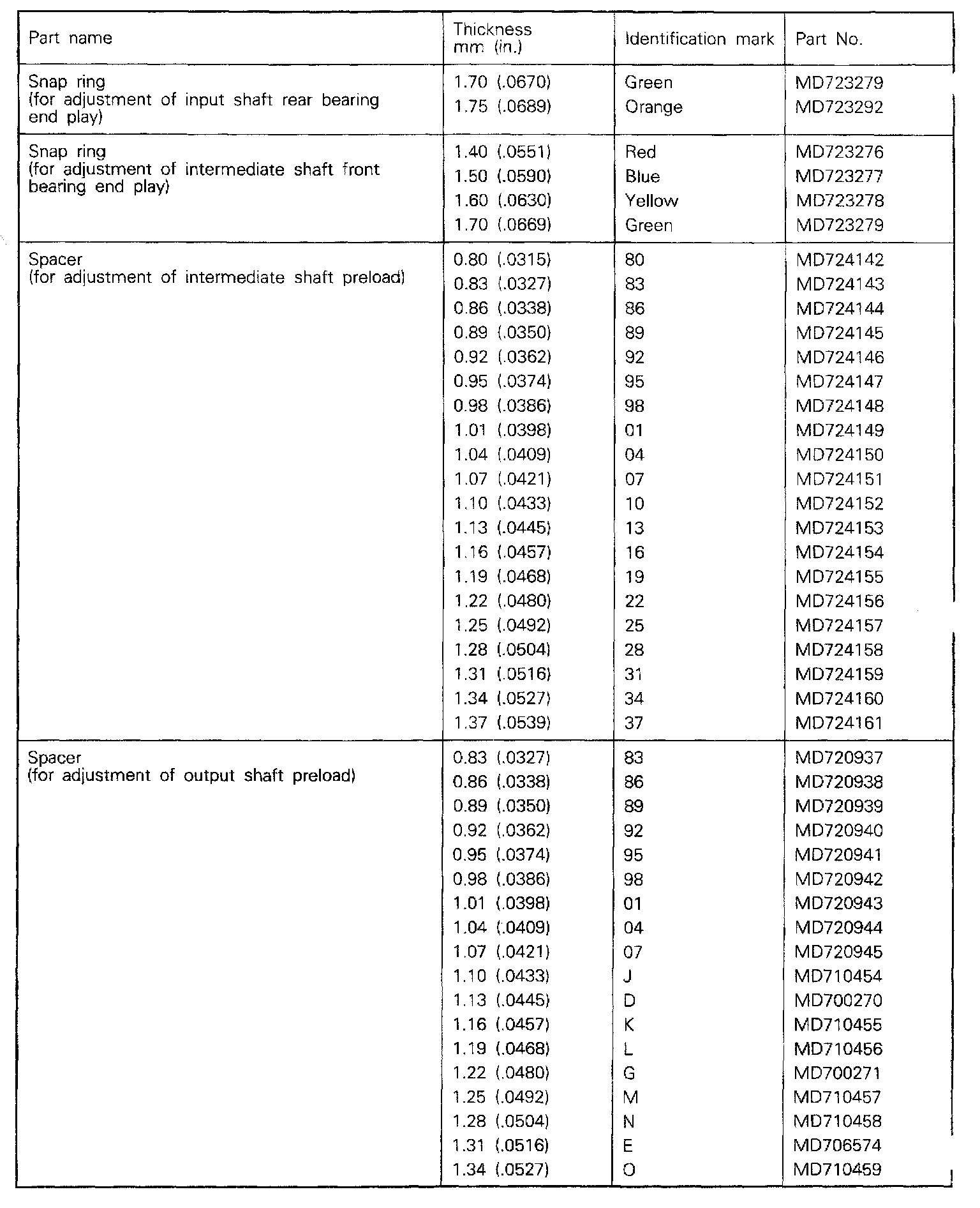 KM210 5-spd M/T, Input, Intermediate & Output Shaft End Play/Preload: