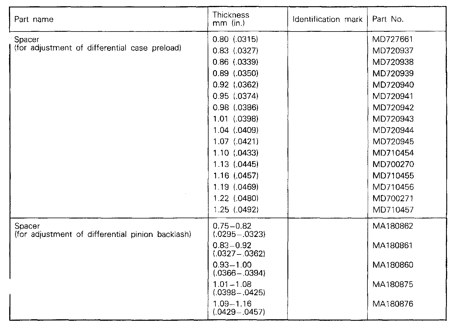 KM210 5-spd M/T, Differential Case & Pinion Backlash: