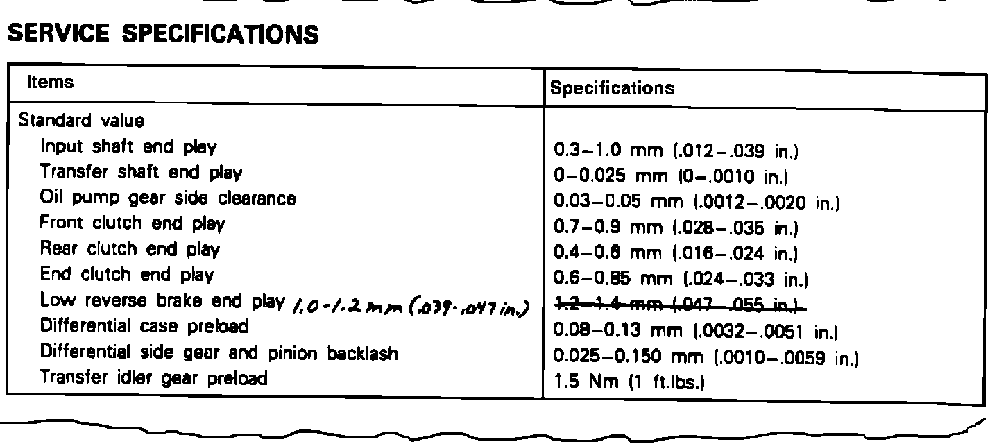 89mitsubishi05SUBJECT: CHANGE OF LOW-REVERSE END PLAY SPECIFICATION ON KM175-5 AND KM177 TRANSAXLES