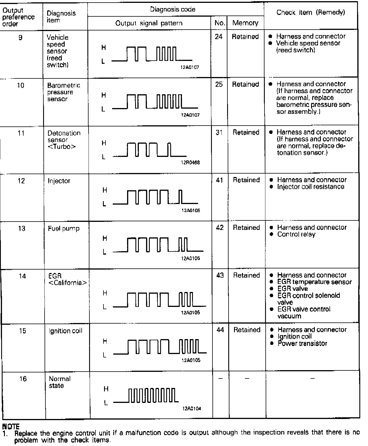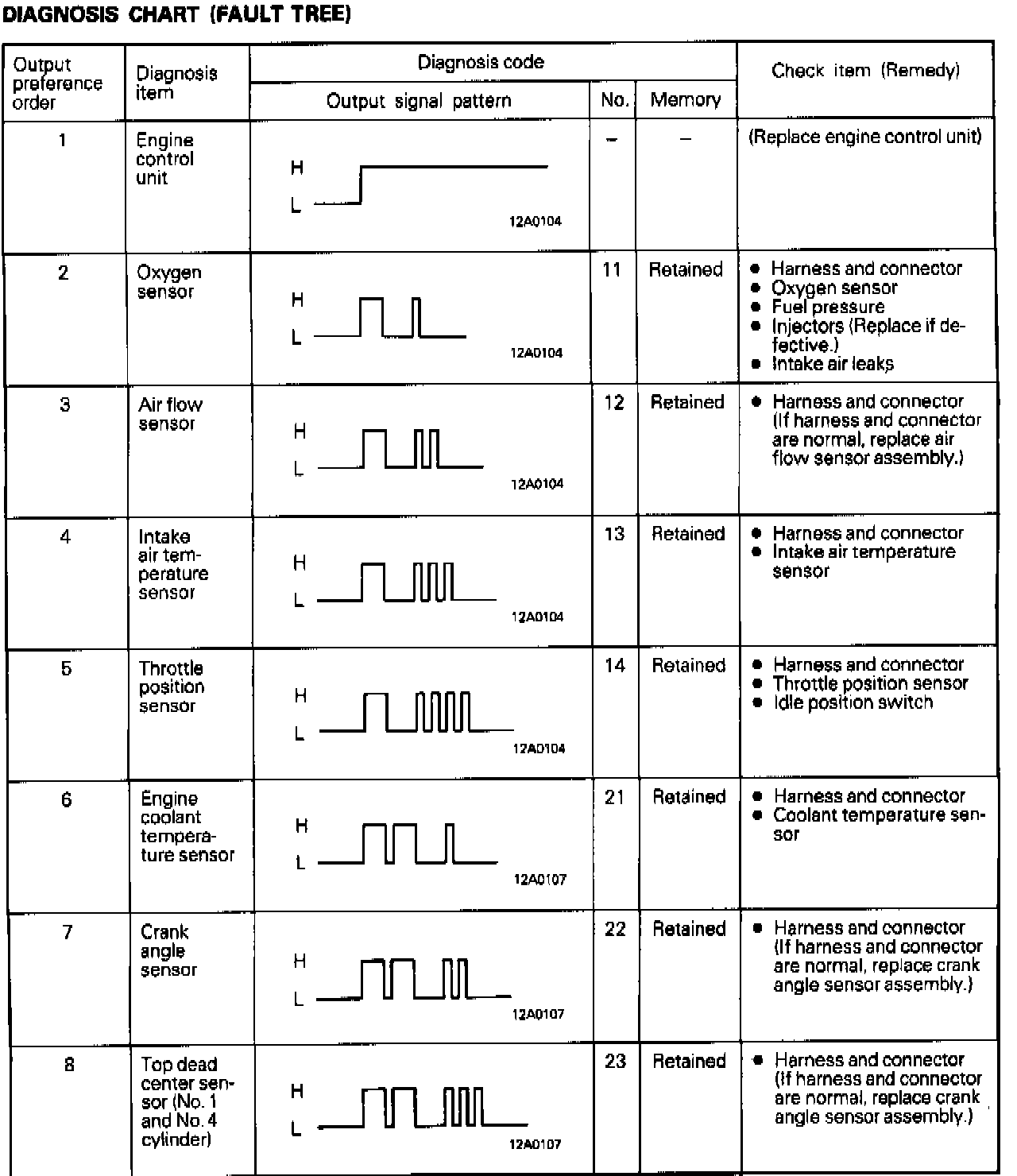 Trouble Code Chart: