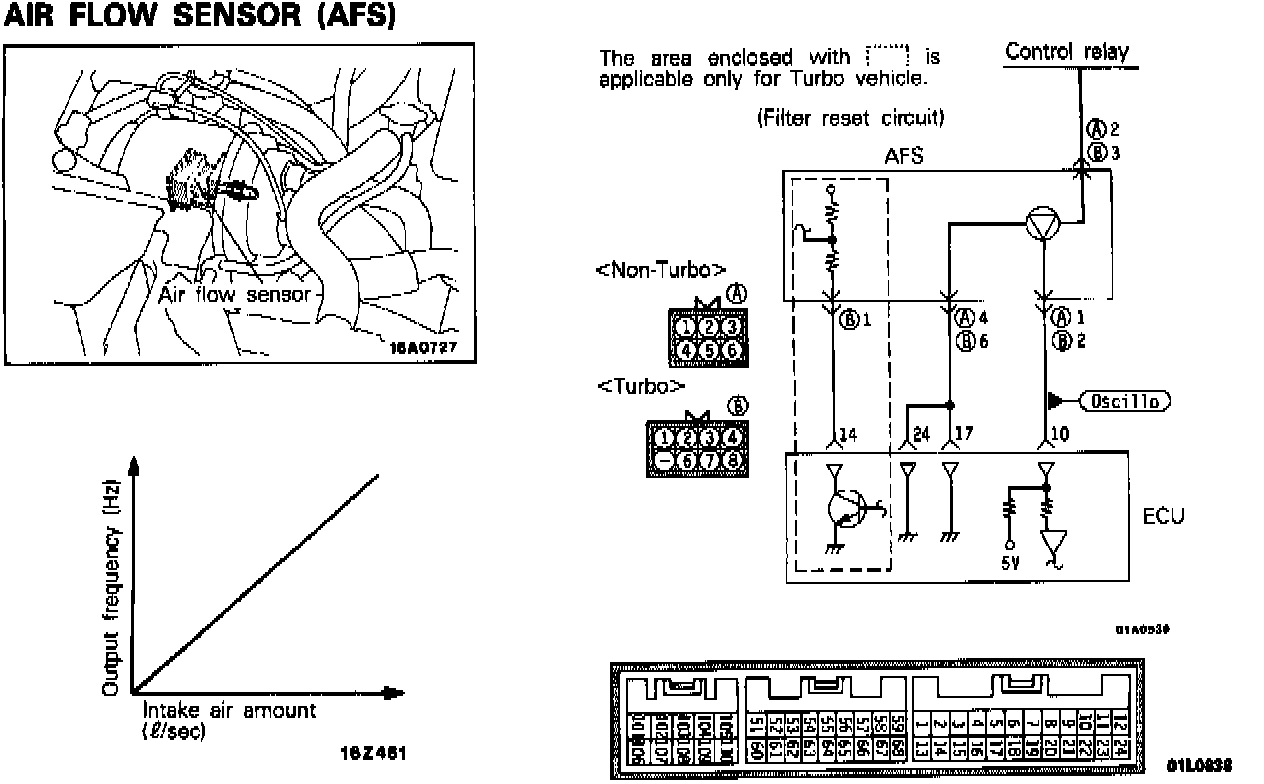 On the turbo vehicle, to eliminate the measurement error of the intake air flow rate influenced by the turbo system during deceleration from high speeds (high load) in the turbo supercharging state, another circuit is added to send the reset signal from ECU to AFSI. When the reset signal is inputted, AFS resets the modulator to select the circuit which attenuates the turbo noise.